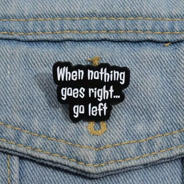 "When nothing goes right – go left" - Lustiger Pin für Querdenker & Optimisten